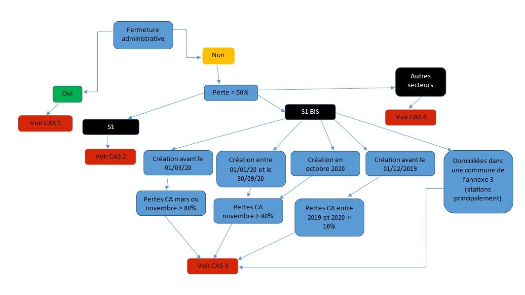 - Ou d’exercer dans le commerce de détail à l’exception des automobiles, motocycles ou location de biens immobiliers et d’être domiciliées dans une commune mentionnée à l’annexe 3 (concerne principalement les stations de ski) (Cas 3)