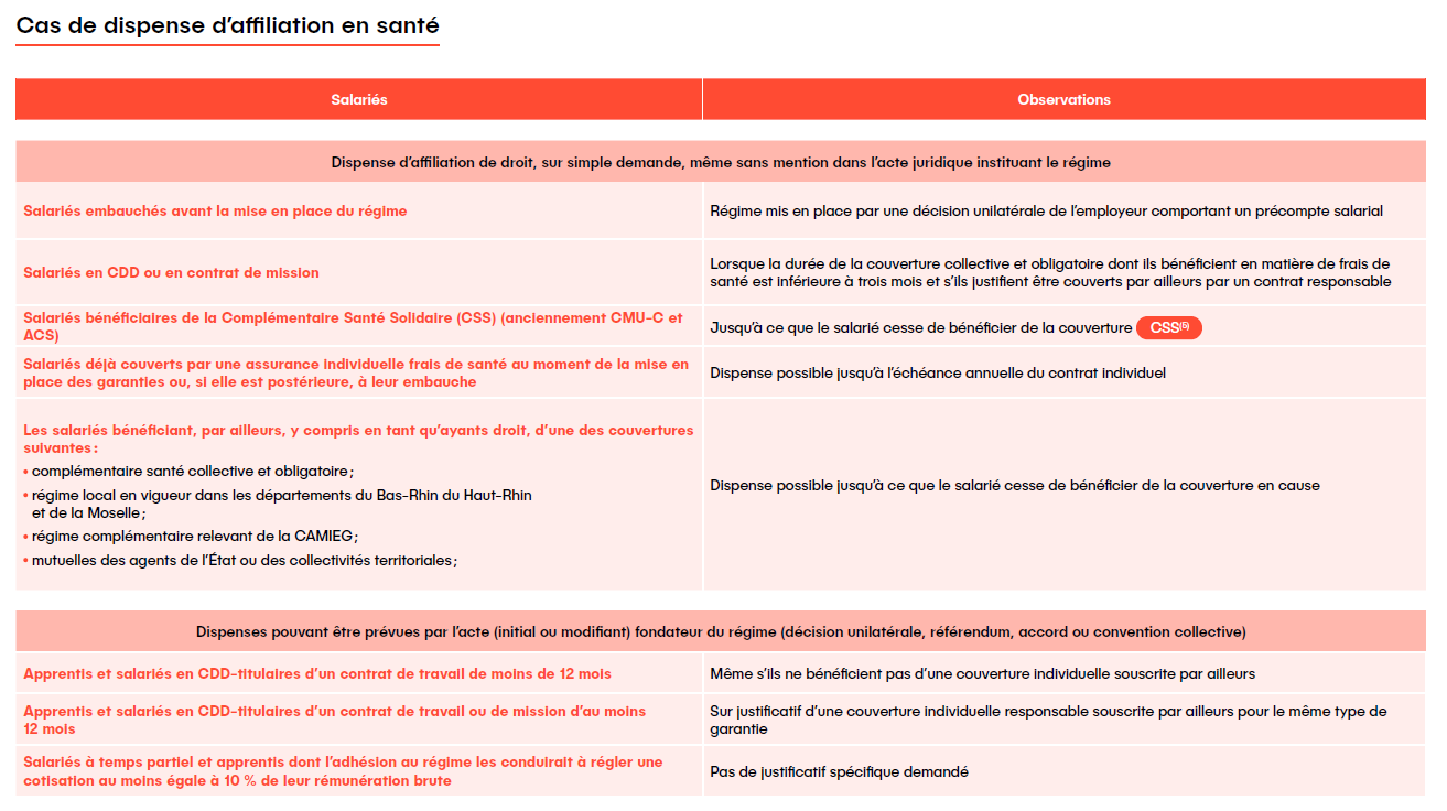 - Si vous avez des salariés dispensés d’adhérer à la mutuelle, de nous faire parvenir les dispenses d’adhésions, et ceci tous les ans, ce sont les dispenses d’adhésion manquantes qui entrainent les redressements Urssaf,